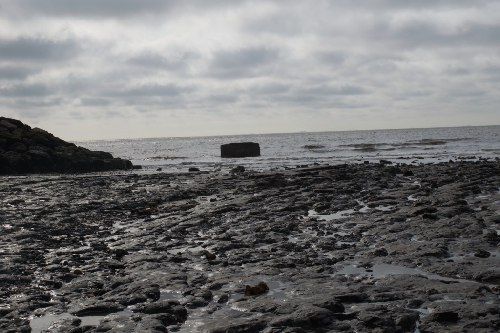 Pillbox in the sea at Bawdsey on grey spring morning