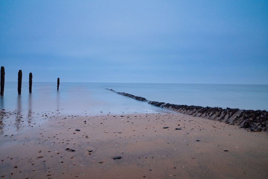 On a flat featureless day I went out to Bawdsey Beach on a workshop to take a series of long exposure photographs and these are two of the images. The tide was so far out that I believe you could have walked to East Lane along the tide line. This first image was a thirty second exposure at a place I have not reached before and the second image was taken a few days later exposing for one second. My mentor suggested a zoomed shot for the beach view in portrait but for that camera I only have prime lenses.